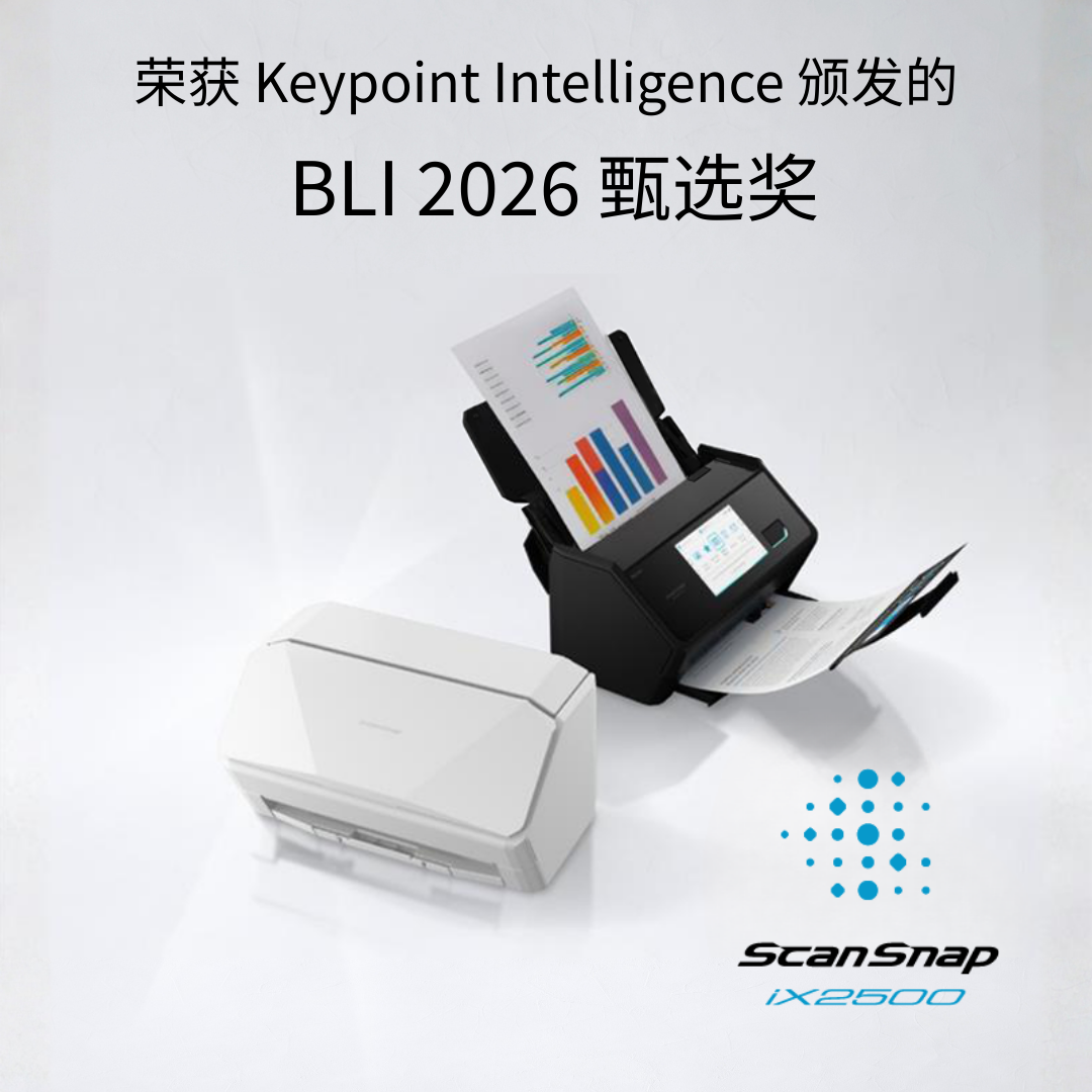 (2026年1月19日,深圳讯)今日,全球文档扫描仪解决方案领军企业株式会社 PFU 在华子公司必福优信息设备(深圳)有限公司宣布,其 ScanSnap 系列扫描仪旗舰机型—— ScanSnap iX2500,荣获了来自美国领先独立评测机构 Keypoint Intelligence 颁发的“BLI 2026甄选奖”。