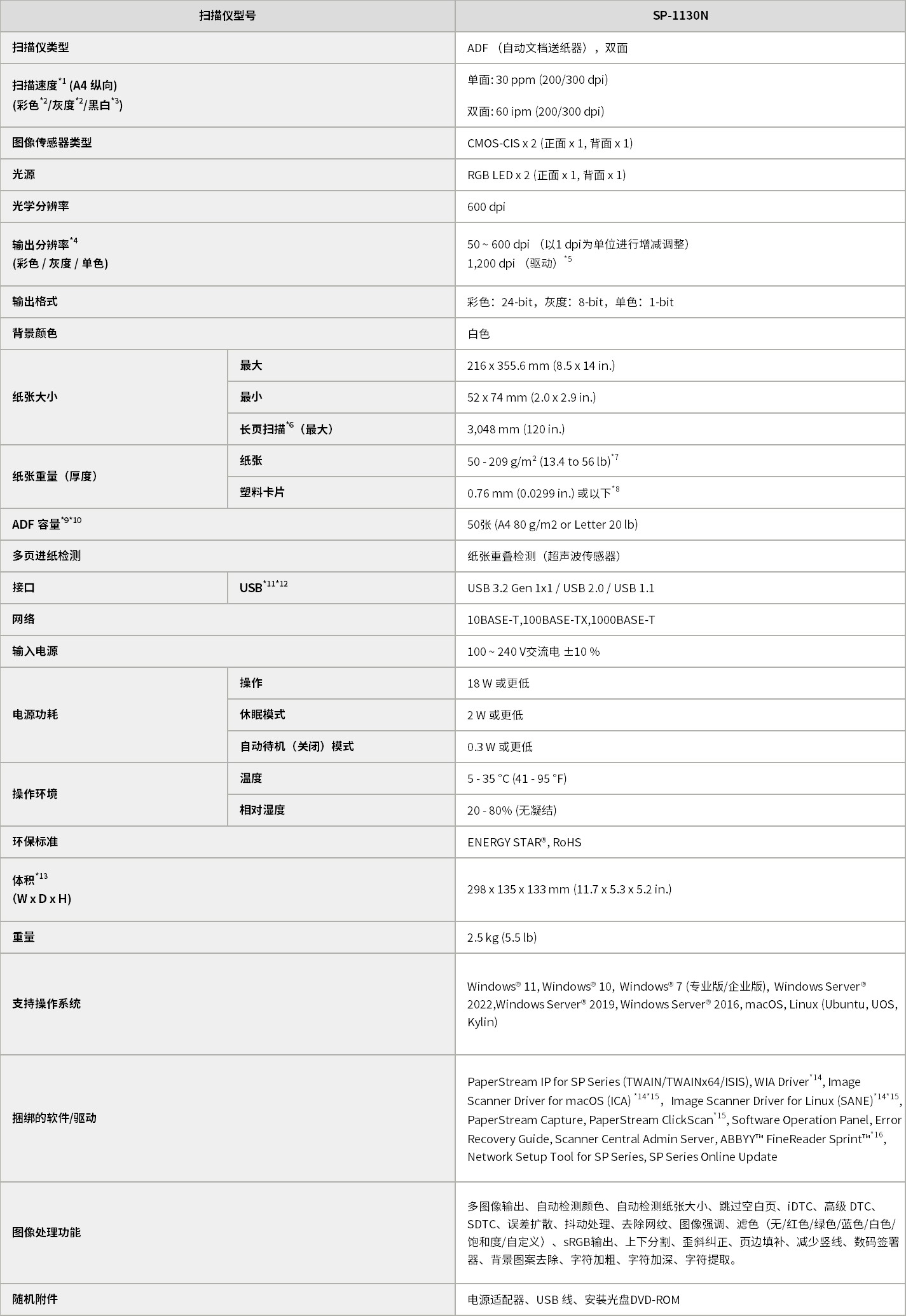 SP-1130N 扫描速度高达30 ppm/60 ipm (A4纵向, 彩色, 200 / 300 dpi),ADF进纸槽可容纳50张纸,支持多种文件混扫,是具有优秀性能的高性价比入门级机型。