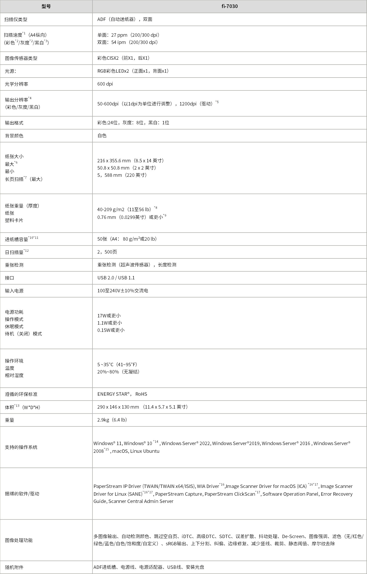 7. 支持扫描长度大于A4纸(210 x 297 mm / 8.3 x 11.7英寸)的文件。使用PaperStream IP(TWAIN/ISIS)在200 dpi进行扫描时,最大扫描长度为5588mm(220英寸)。