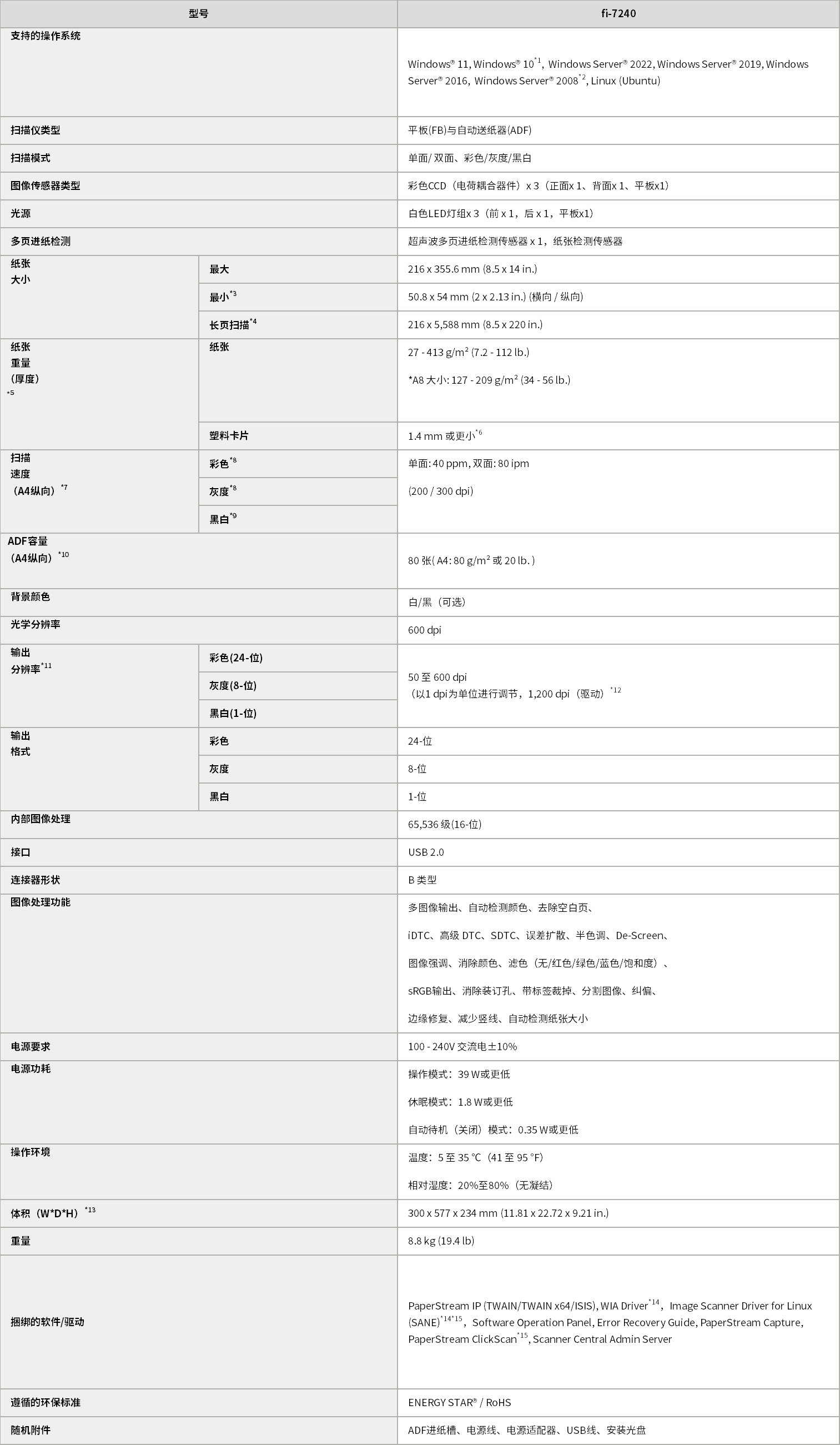 fi-7240可在扫描多种纸张大小的文档时自动侦测纸张大小。此外,该型号还配备偏斜调整器,用于侦测所扫描文档纸张是否对齐,并调整偏斜纸张,尽可能减少扫描图像边缘缺失的情况。即便所扫描的文档未排列整齐,也可获得令用户满意的扫描效果。