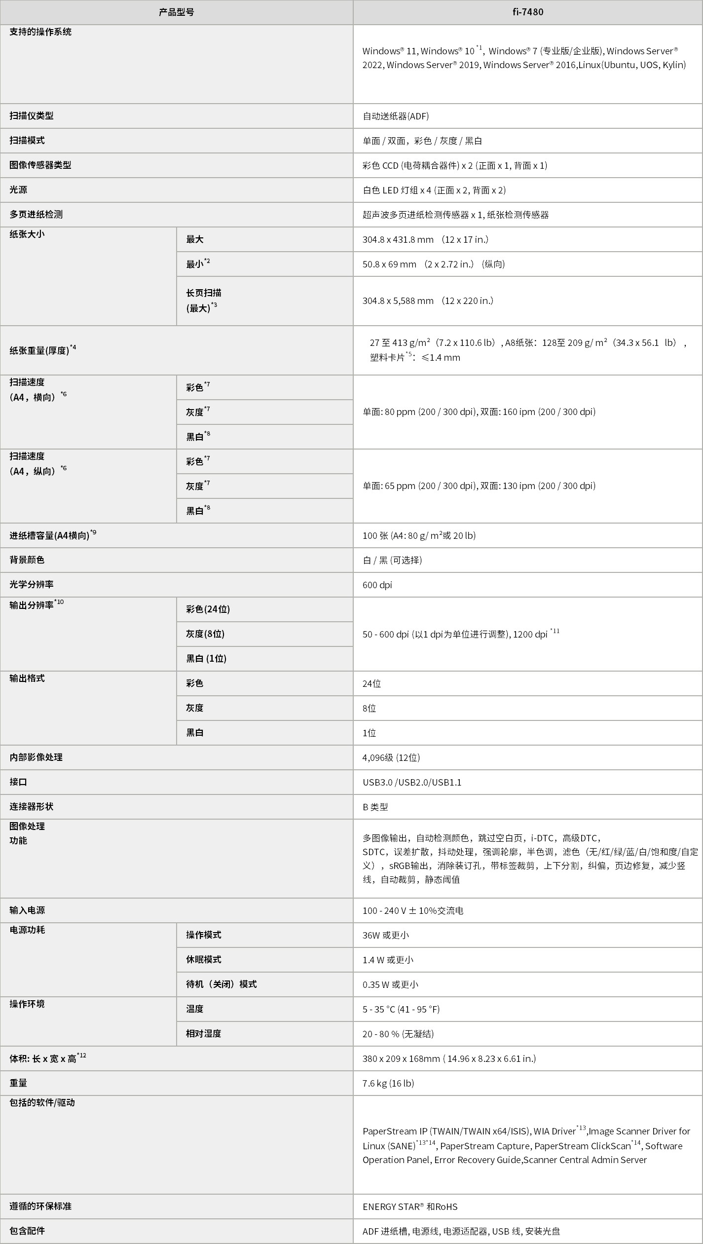 fi-7480的扫描速度高达80 ppm/160ipm(A4,横向,彩色,200/300 dpi)。仅需不到一秒即可从休眠模式恢复,实现无间断工作。