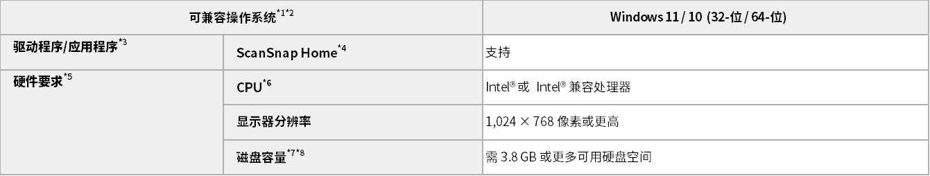 5.如果所连接计算机不满足这些要求,ScanSnap 设备可能无法运行。