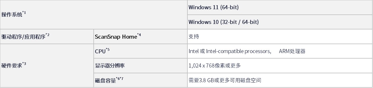*1 ScanSnap扫描仪可以在 Windows 11 和 Windows 10 的桌面模式下运行。不支持在 Windows 10 Enterprise 2015 LTSB 版本或基于 ARM 的 Windows 10上运行。